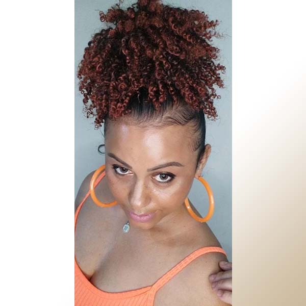 Afro puff cacheado castanho acobreado fibra orgânica