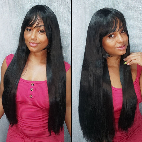 Peruca Lace Wig lisa castanho escuro com franja 75cm